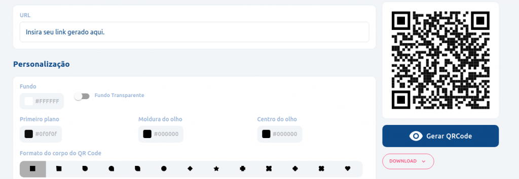 Por exemplo, com o link que geramos acima, podemos acessar um gerador de QR code do Google, como o QR code fácil.